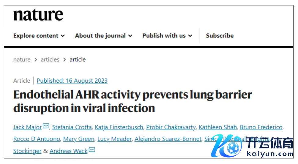 2023年《当然》期刊上发表的一篇磋商发现,在肺血管内皮细胞里,有一种叫作芳醇烃受体(AHR)的卵白,AHR在被配体激活之后,不错保护肺血管内皮细胞,有助于督察肺部健康樊篱并缓解感染。