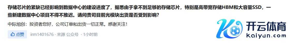 中际旭创:公司订单和出货一切畴前中际旭创:公司订单和出货一切畴前