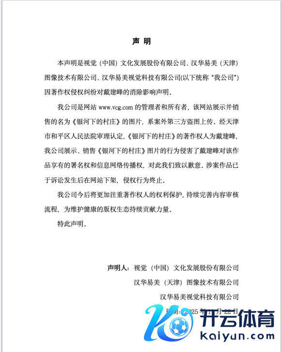 视觉中国致歉:侵权涉案作品已于诉讼发生后在网站下架 侵权行径拒绝www.kaiyun.com视觉中国致歉:侵权涉案作品已于诉讼发生后在网站下架 侵权行径拒绝
