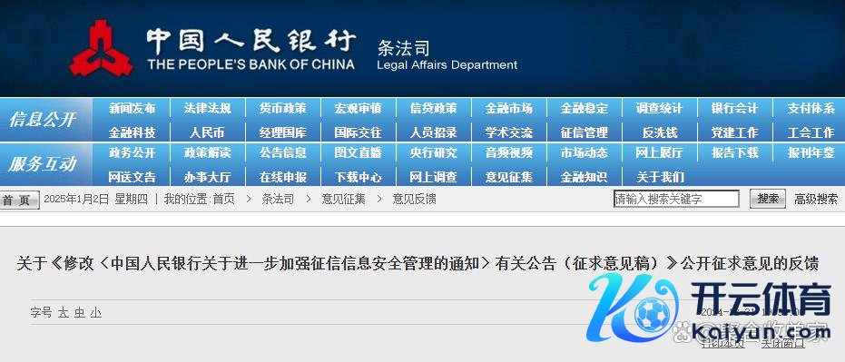 近日开云·kaiyun平台登录入口,中国东谈主民银行在其官方网站上发布了对于《修改〈中国东谈主民银行对于进一步加强征信信息安全惩办的告知〉联系公告(征求想法稿)》公开征求想法的反映情况。这一举措旨在进一步加强个东谈主信息保护,确保征信信息安全,切实调治信息主体的正当权柄。