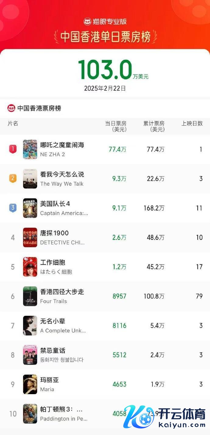 央视网音信:据统计,电影《哪吒之魔童闹海》在中国香港上映首日票房报收77.4万好意思元(超600万港元),成为中国香港单日票房榜的冠军。上映首日成为中国香港及澳门动画电影开画票房冠军,内地电影开画票房冠军。